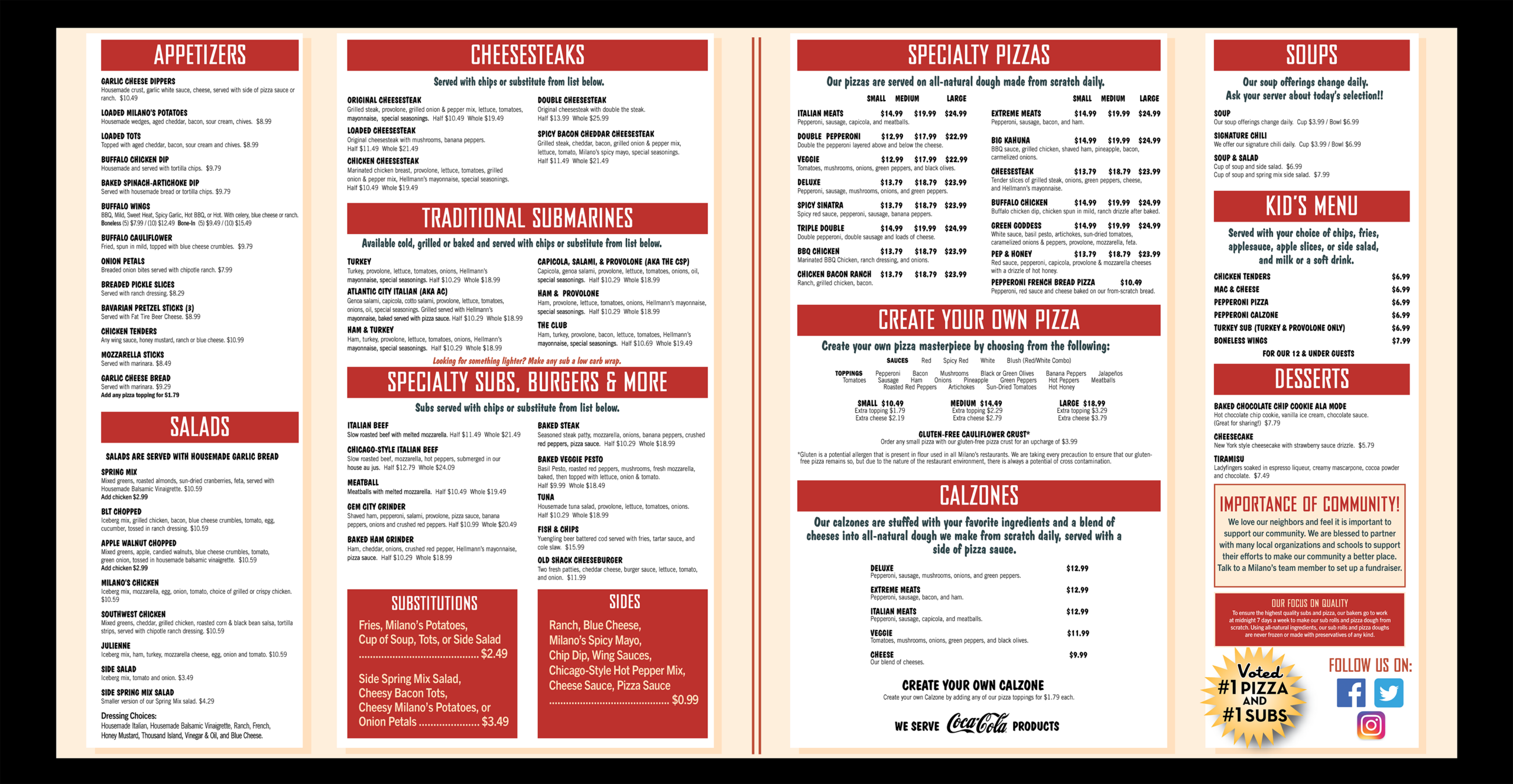 Whether you want to stick to tradition or try something new, our menu has you covered. From award-winning pizza and classic sub sandwiches, or gluten-free options, dining in with family and friends is sure to leave you satisfied (or, if you’re on-the-go, we offer carryout and in some areas delivery)!